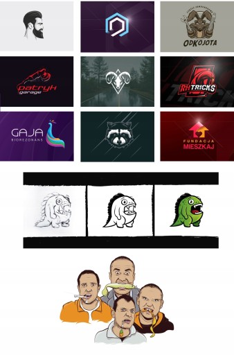 Powyżej (na projekcie logo dinozaura i projekcie logo twarzy) możesz zauważyć jak powstaje styl kreskówkowy, który prezentuje jeden z naszych stylów. Te projekty podsumowują nasze portfolio.