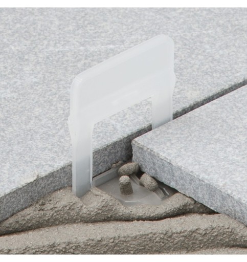 Wszystkie klipsy mają punkt zerwania bardzo blisko płaszczyzny, na której leżą płytki (1,2 mm). Oznacza to, że system może być używany bez problemu nawet na bardzo cienkich płytkach (3 mm), ponieważ nadal pozostaje szczelina 1,8 mm dla zaprawy.