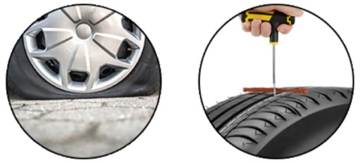 - Zestaw pozwala na bardzo szybkie naprawy uszkodzeń w oponach wszystkich typów.
