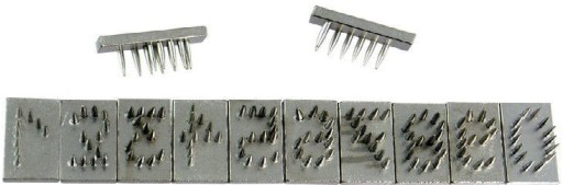 Cyfry zostały galwanicznie zabezpieczone, aby nie ulegały korozji przez długi czas. Należy je wsunąć w odpowiedniej kolejności do metalowych szyn. Szyny te posiadają śrubę motylkową zabezpieczającą cyfry przed wysunięciem w trakcie pracy. Wysokość cyfr to 20 mm. Znaki poddane zostały galwanicznie zabezpieczone, dzięki czemu charakteryzują się odpornością na korozję. Szpilki, które są wykonane ze stopów metali, odznaczają się długą żywotnością i zachowują ostrość przez długi okres użytkowania.