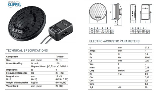 AUDISON GŁOŚNIKI AP1 - TWEETERY 26MM + ZWROTNICE