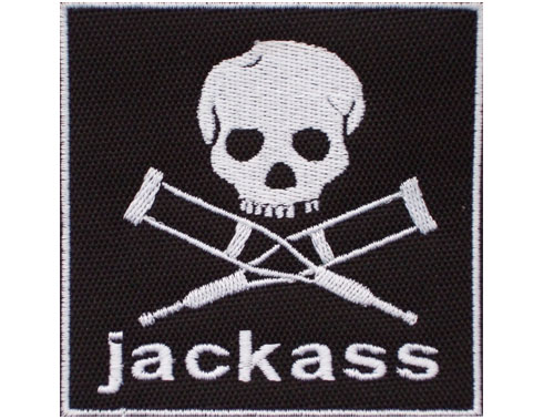 Naszywka - JACKASS wykonana techniką haft komputerowy.
