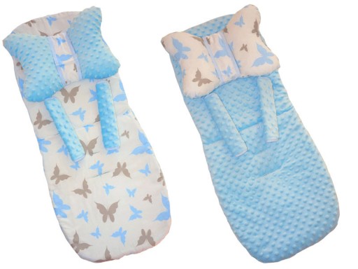 Oferujemy Państwu komplet w skład, którego wchodzi materacyk – wkładka do wózka spacerowego wraz z poduszeczką – motylkiem oraz osłonkami na pasy.