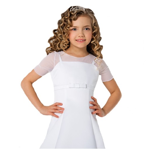 Mamy do zaoferowania Państwu nowe bolerko komunijne z krótkim rękawem. Wykonane jest bardzo starannie z tiulu elastycznego, dostępne w kolorze białym lub ecru.