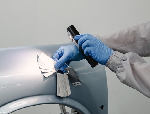 Przy doborze lakierów samochodowych firmy DUPONT, jako nieliczni, korzystamy ze SPEKTOFOTOMETRU, elektronicznego miernika kolorów pozwalającego uzyskać idealny, niemalże 100% odcień dorabianego lakieru.