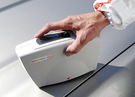 Przy doborze lakierów samochodowych firmy DUPONT, jako nieliczni, korzystamy ze SPEKTOFOTOMETRU, elektronicznego miernika kolorów pozwalającego uzyskać idealny, niemalże 100% odcień dorabianego lakieru.