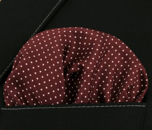 Stylowa, Męska Poszetka CHATTIER w Groszki, Kropki, Ciemnoczerwona