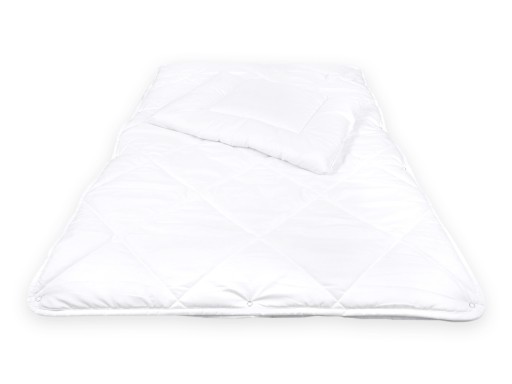 Z przyjemnością oferujemy Państwu całoroczny komplet polskiej firmy Poldaun, składający się z dwóch spinanych ze sobą kołder oraz poduszki w rozmiarze 90x120 i 40x60cm.
