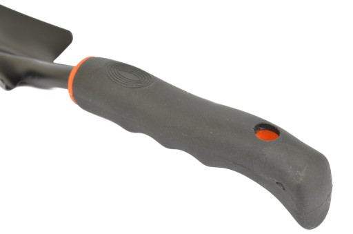 Posiada dobrze wyprofilowany uchwyt pokryty gumą z otworem do zawieszania,