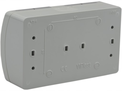 Герметичная двойная розетка IP44, для поверхностного монтажа, серая