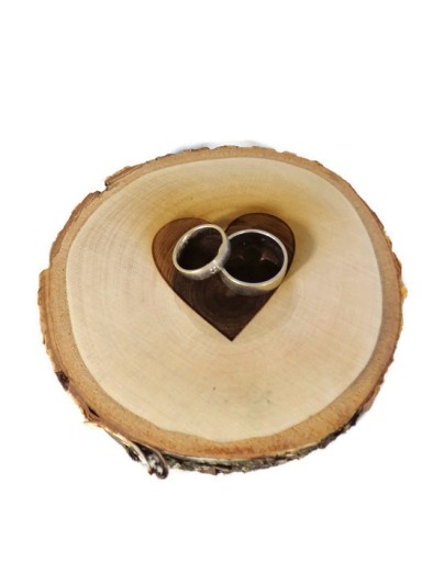 Oferujemy Państwu brzozowy plaster drewna z grawerem serca podstawka pod obrączki.