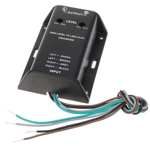 Zastępuje brakujące wyjścia RCA (Chinch) w radioodtwarzaczu redukując moc np. przy podłączaniu wzmacniacza. Montaż polega na podłączeniu konwertera bezpośrednio do wyjść z końcówki mocy radioodtwarzacza (wyjścia na głośniki). Nie powoduje zmiany impedancji, więc urządzenie można stosować równolegle z grającymi głośnikami. Posiada dwa niezależne kanały z regulacją głośności. Wyjście to 2 gniazda RCA (Chinch).