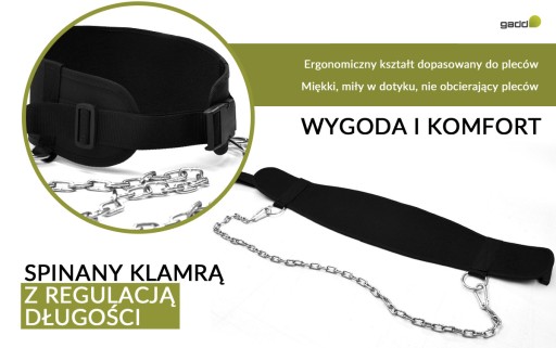 Pas przeznaczony do wykonywania pompek na poręczach oraz podciągania na drążku z obciążeniem.