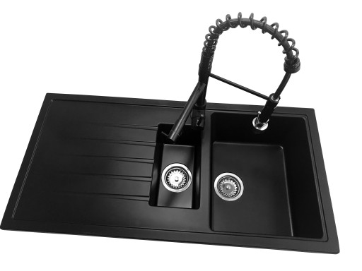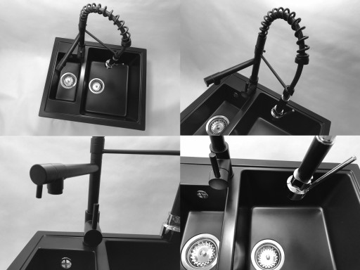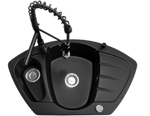 КУХОННЫЙ смеситель с 2 изливами, черный, мойка из гранита