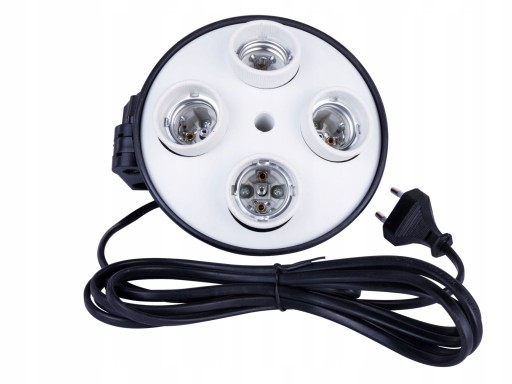 Oprawa na 4 żarówki E27 z dwoma przełącznikiem na dwie żarówki każdy. W komplecie kabel zasilający. Urządzenie posiada bezpiecznik. Istnieje możliwość zamontowania parasolki do oprawy. Oprawka posiada 2 niezależne włączniki, każdy na dwie żarówki.