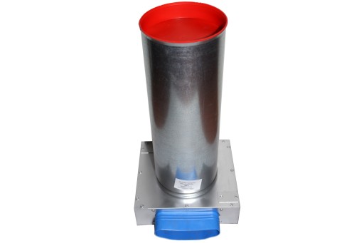 Skrzynka rozprężna z jednym pojedynczym przyłączem (pod katem 90st.) do podłączenia płaskich elastycznych kanałów Smart-Flex FLAT FD i jednym przyłączem pod zawór wentylacyjny Ø 125 mm