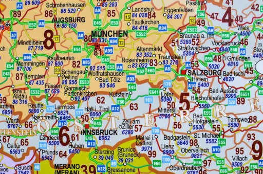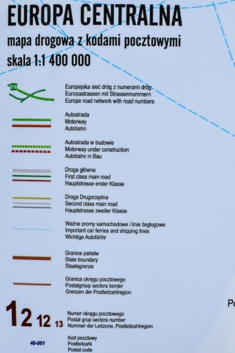 Duża mapa ścienna Europy środkowej z zaznaczonymi kodami pocztowymi. Odpowiednio dobrana kolorystyka sprawia, że mapa jest czytelna, a praca z nią - znacznie łatwiejsza. Mapa uwzględnia numery i granice okręgów pocztowych, kody pocztowe, a także podstawową sieć dróg.