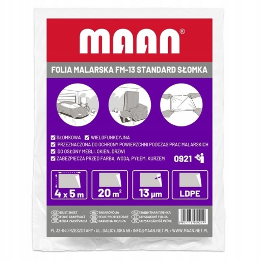 Używana do ochrony przed kurzem, brudem, farbami i wilgocią przy wykonywaniu prac malarskich, remontowych i wykończeniowych.