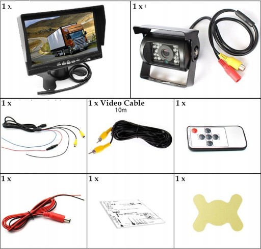 КАМЕРА ЗАДАЧИ 9ИК МОНИТОР 7 ДЮЙМОВ 10М АВТОБУС МДП
