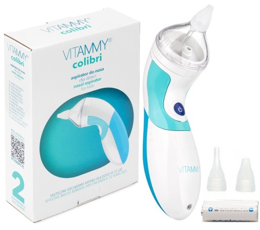 Vitammy Colibri, można stosować u dzieci w wieku 0 - 12 lat a dzięki dwóm elastycznym końcówkom, opiekun jest w stanie oczyszczać nos u dziecka w sytuacji kataru różnego pochodzenia.