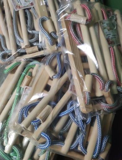 Bardzo solidne wykonanie. Liny zakończone metalowymi kółkami, dzięki czemu możliwy jest szybki i łatwy montaż. Średnica kółek 4,5cm