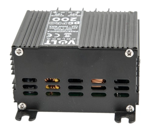 Przetwornica DC PRO-200 przeznaczona do zastosowań profesjonalnych. Charakteryzuje się bardzo niskim poziomem zakłóceń i bardzo stabilnym napięciem wyjściowym idealna do zasilania m. in. CB radio. Seria nowych przetwornic 24/12V o zwiększonej mocy i jednocześnie obniżonej temperaturze pracy. W przetwornicach zastosowano szereg nowoczesnych rozwiązań i wydajny system chłodzenia, co znacząco zwiększyło sprawność urządzenia. Zostały wprowadzone dodatkowe zabezpieczenia (m.in. przeciwzwarciowe) oraz sygnalizacja nieprawidłowej pracy. Model DC PRO-200 został wyposażony w dodatkowe filtry obniżające poziom zakłóceń.