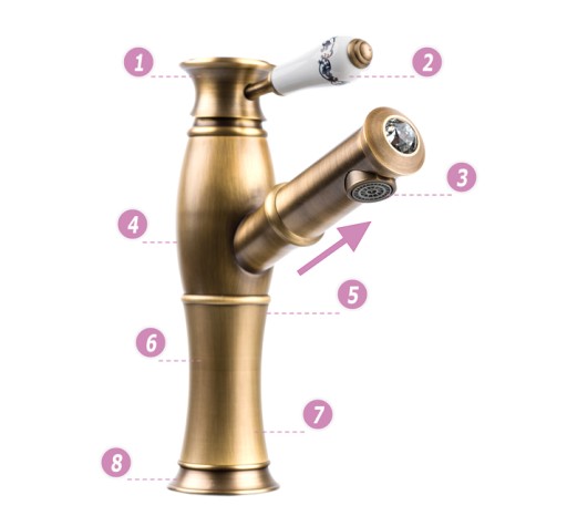 4. Elementy baterii wykonane z mosiądzu - najtrwalszego materiału, a także specjalna powłoka wykończenia gwarantuje wysoką higieniczność.