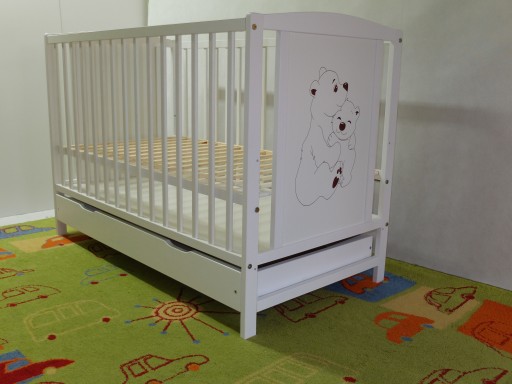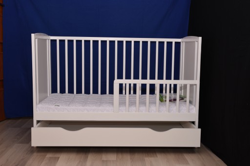 Łóżeczko wykonane jest z drewna sosnowego I gatunku, z możliwością zamiany na tapczanik dla starszego dziecka poprzez wymontowanie boku i zamontowaniu "drabinki" zabezpieczającej (drabinka zabezpieczająca w zestawie), natomiast szuflada i szczyty z płyty meblowej, pokryte nietoksycznymi farbami i lakierami posiadającymi atest.