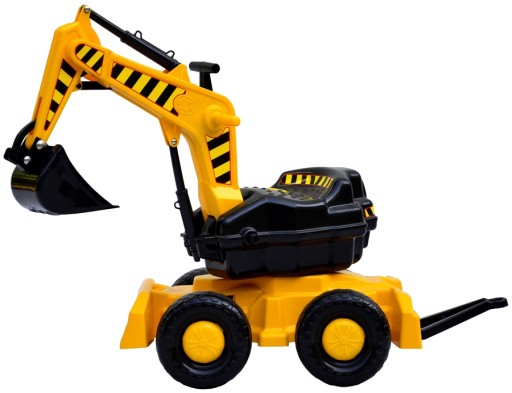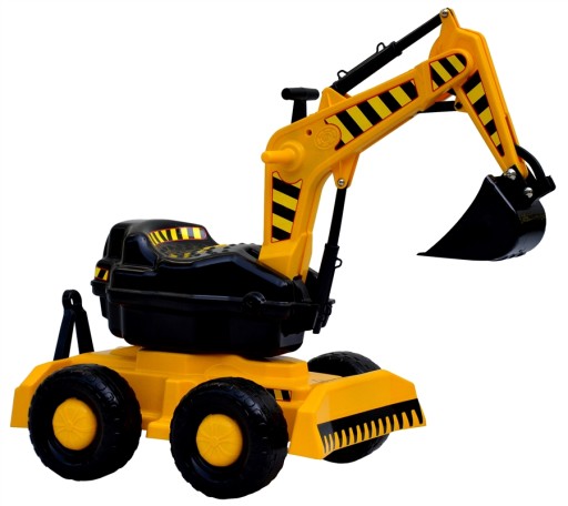 Dzięki zabawie koparką dziecko rozwija koordynację ruchową , doskonali koncentrację i sprawność manualną. Dziecko siedząc na siedzisku w zależności od kierunku odpychania nogami może jechać do tyłu lub do przodu. Antypoślizgowe siedzisko zabawki jest ruchome i obraca się wokół własnej osi 360°. Sterując ruchomą dźwignią i łyżką pojazdu za pomocą specjalnych uchwytów, możemy naśladować pracę prawdziwej koparki.