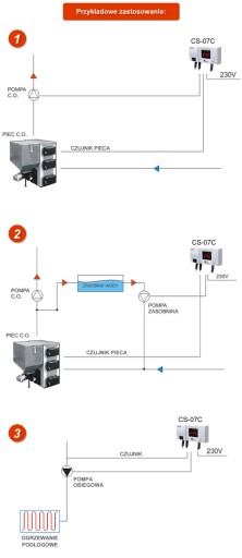 Sterownik CS-07C może być zastosowany jako termostat lub sterownik pompy podłogowej.