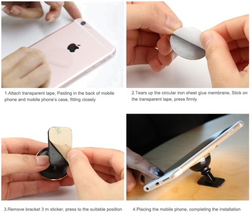 ✅Uchwyt trzyma bardzo mocno i pewnie wszystkie rodzaje smartfonów dzięki magnetycznej powierzchni. Zestaw zawiera metalową płytkę, którą umieszcza się na tyle urządzenia mobilnego.