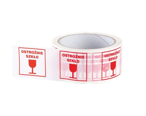 CECHY: Taśmy pakowe z nadrukiem standardowym przeznaczone dla zabezpieczenia przesyłek oraz oznaczenia konieczności sprawdzenia ich zawartości.