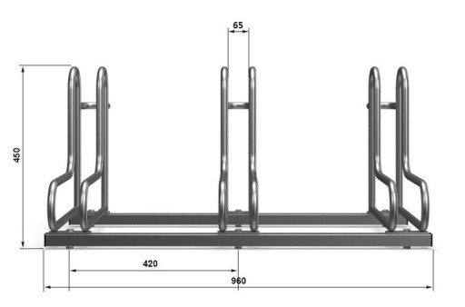 - optymalny rozstaw stanowisk (42cm) pozwala na swobodne i bezpieczne zaparkowanie rowerów niezależnie od ich wielkości i rodzaju