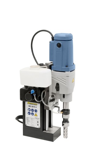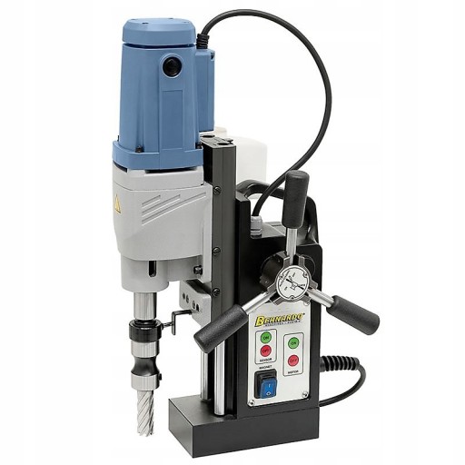 Precyzyjna wiertarka magnetyczna o bardzo solidnej konstrukcji. Prezentowana maszyna posiada silnik o mocy 1550W zapewniający wysoką wydajność. Urządzenie charakteryzuje niezawodność oraz jakość wykonania na najwyższym poziomie. Wiertarka została uziemiona i jest podwójnie izolowana, a jej siła przyciągania podstawy magnetycznej wynosi, model V wyposażony w automatyczny posuw wrzeciona 12 800 N.