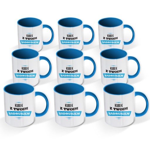9szt. ceramicznych kubków z kolorowym uchwytem i środkiem klasy AAA z Twoim indywidualnym nadrukiem, zapakowany w ozdobny kartonik.