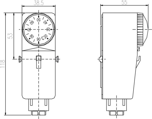 Termostat przylgowy w obudowie, NO: WPR90GD