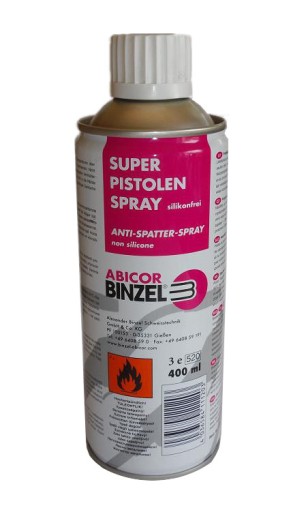 - bezsilikonowy preparat w aerozolu utrudnia przywieranie odprysków spawalniczych na wewnętrznych powierzchniach dysz gazowych