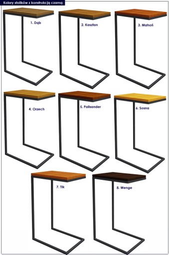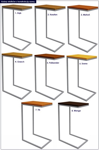Uwaga:Dostępne obecnie kolory konstrukcji stolików to biały, czarny oraz srebrny.
