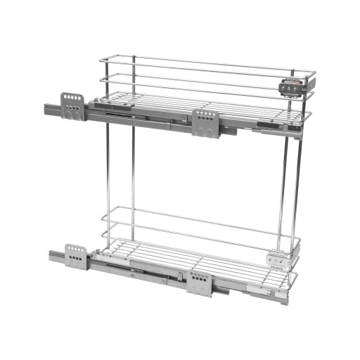 Cargo Mini dwupoziomowe przeznaczone jest do szafek kuchennych o rozmiarze 150mm. Cargo wyposażone jest w prowadnice bocznego montażu, które są o wiele bardziej stabilne od prowadnic kulowych. System pełnego wysuwu pozwala na łatwy dostęp do zawartości szafki, a samodociąg z hamulcem gwarantuje ciche domykanie. Cargo te posiada dwa mocowania do frontu meblowego wraz śrubkami i wkrętami. Łatwy montaż i demontaż kosza z części prowadnic. Produkt najwyższej jakości na rynku europejskim wyprodukowany przez włoskiego producenta SIGE.