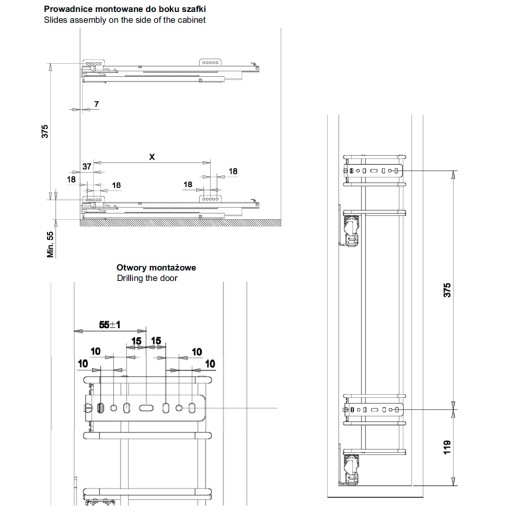Cechy produktu: Pełny wysuw, Samodociąg z hamulcem, Możliwość zamocowania frontu, Montaż boczny, Bardzo stabilne