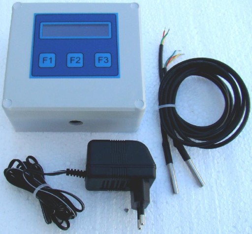 W komplecie są: sterownik, 2 czujniki, zasilacz