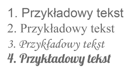 - Czcionka: Możliwość wyboru czcionki i wzoru z naszej oferty (zdjęcie poniżej)
