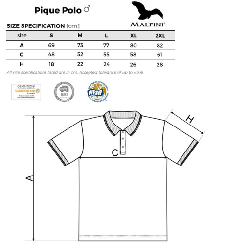 - Koszulka Polo 65% bawełna, 35% polyestru,