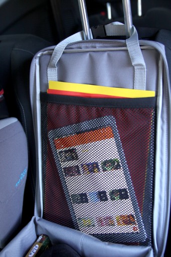 Nauka geografii podczas jazdy samochodem? Na blacie torby znajduje się kieszeń, a w niej kolorowa, edukacyjna mapa Europy. Zamiast mapy dziecko może włożyć do kieszeni swój ulubiony rysunek.