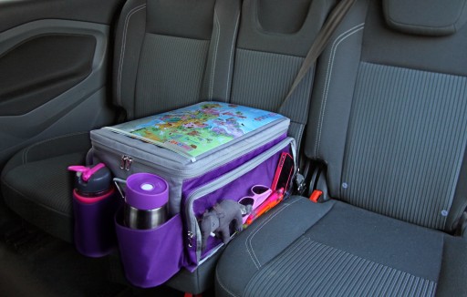 Blat torby jest na tyle sztywny, że może służyć jako stolik znajdujący się pomiędzy dwoma fotelikami samochodowymi. Dwójka dzieci może grać na nim w karty lub gry podróżne.
