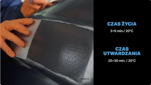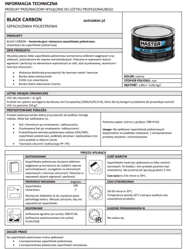 Wysokiej jakości szpachlówka poliestrowa wzmocniona włóknem węglowym oraz szklanym, przeznaczona do napraw samochodowych.