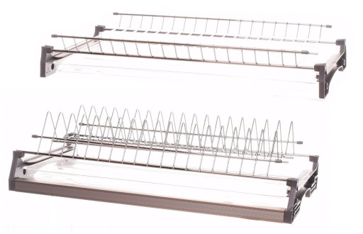 ZNAKOMITEJ JAKOŚCI DWUPOZIOMOWA OCIEKERKA NA PODSTAWIE ALUMINIOWEJ STOSOWANA W SZAFKACH WISZĄCYCH Z ODKRYTYM DNEM. WYPOSAŻONA JEST W PLASTIKOWĄ TACKĘ KTÓRA WKŁADANA JEST DO SPECJALNEGO STELAŻA MONTOWANEGO DO BOKÓW SZAFKI