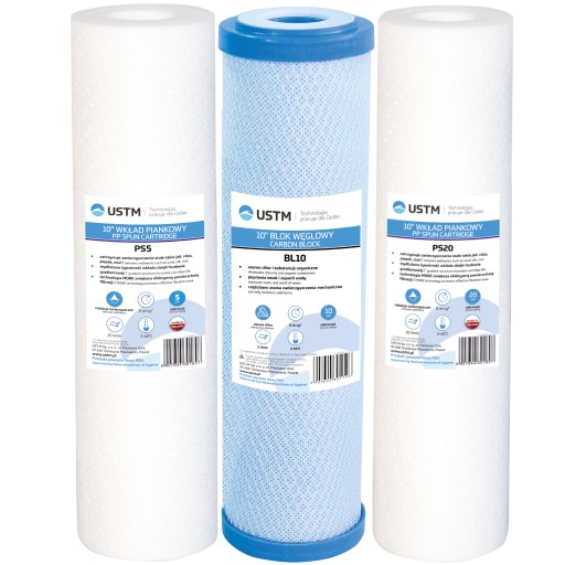 ZESTAW 3 SZTUK WKŁADÓW UST-M DO SERWISU ODWRÓCONEJ OSMOZY