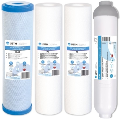 Zestaw 4 szt wkładów firmy USTM do serwisu odwróconej osmozy RO5.