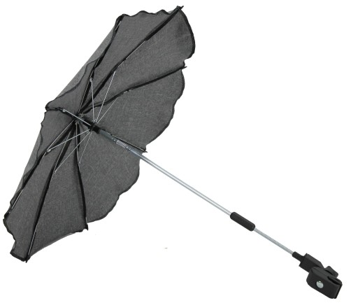 Parasolka posiada regulowany uchwyt oraz zginany przegub dzięki czemu pasuje do każdego wózka .Parasolkę można również ustawić w dowolnej pozycji,dzięki regulacji przegubów